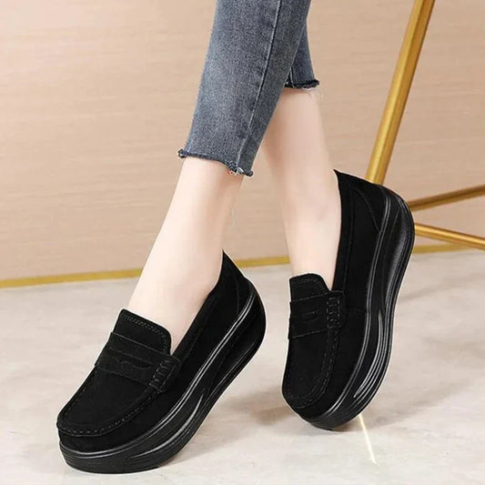 Orthopädischer Mokassin für Damen mit Keilabsätzen aus Wildlederimitat