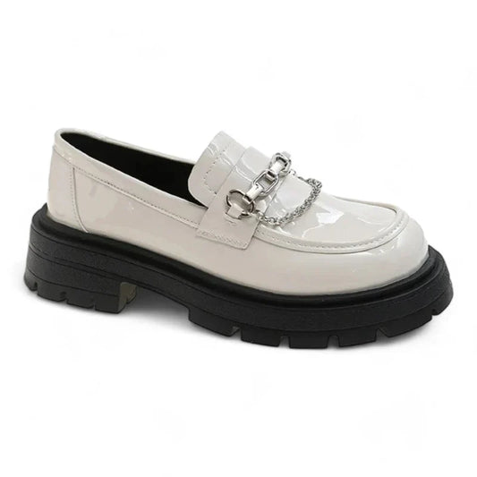Stylische Damenmokassins im Punk-Style mit komfortablen Lackkeilen