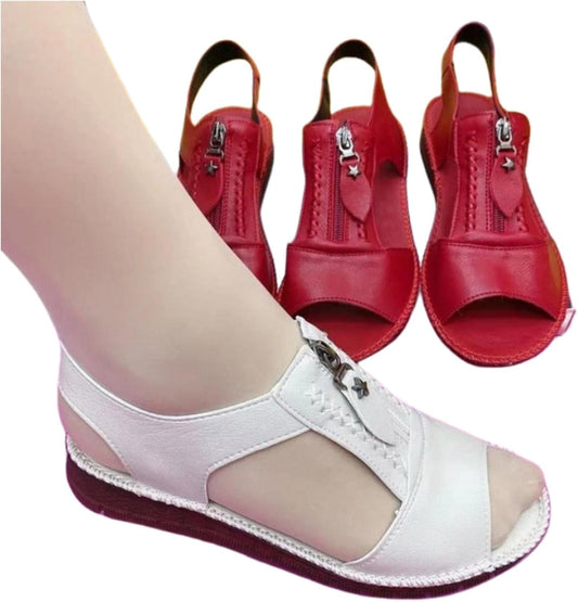 Bequeme und stylische orthopädische Sommersandalen für Damen aus hochwertigem Kunstleder mit flacher Sohle