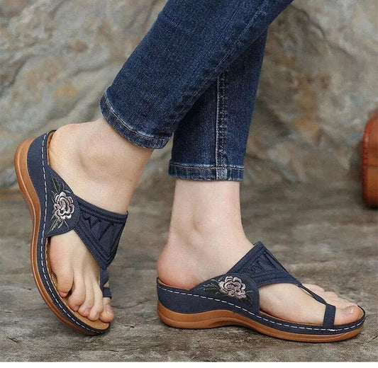 AusverkauftOrthopädische Damensandalen mit Blumenstickerei