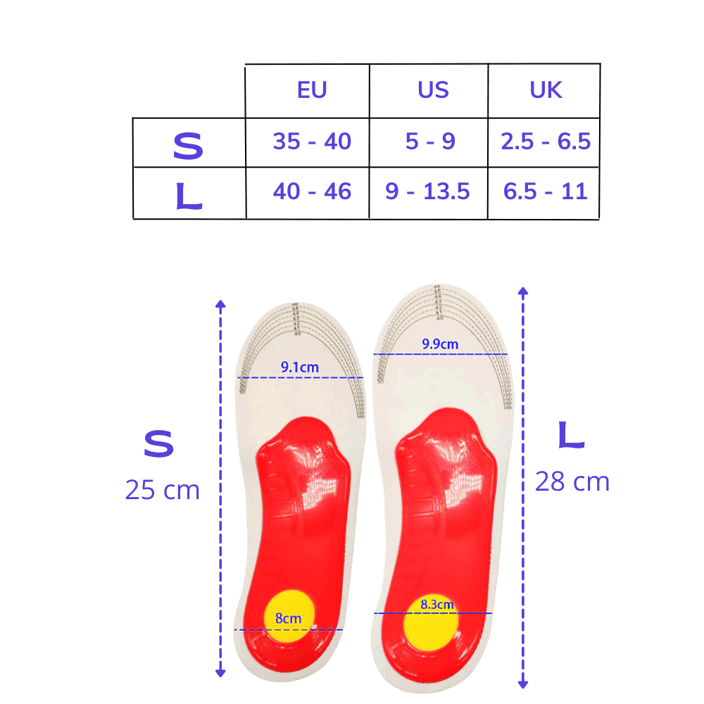 Erlebe wohltuende Linderung, während diese Einlagen deine Füße polstern und Fuß-, Knie- und Rückenschmerzen mühelos reduzieren.