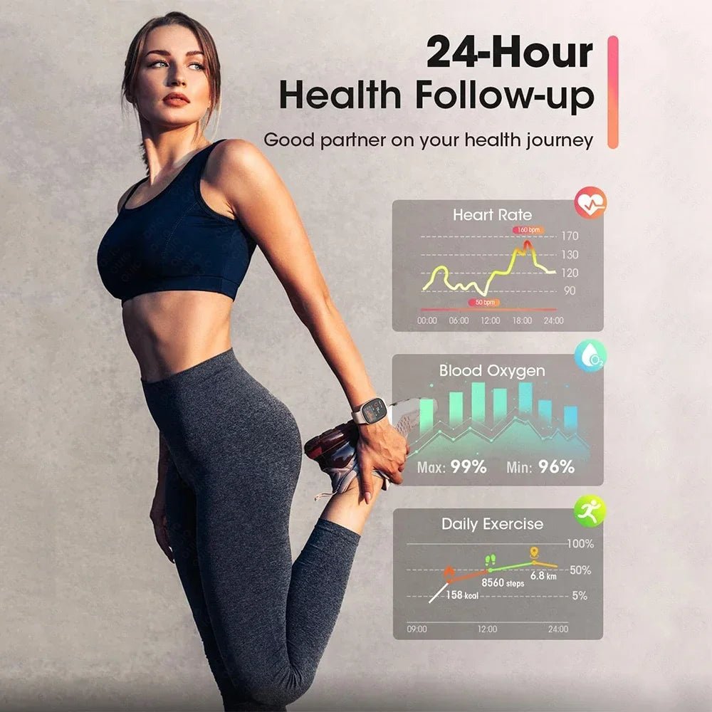 Smartwatch für Männer, Frauen, Senioren - Herzfrequenz, Sauerstoffgehalt im Blut, Bewegung, Schlaf, Bluetooth-Anruffunktion