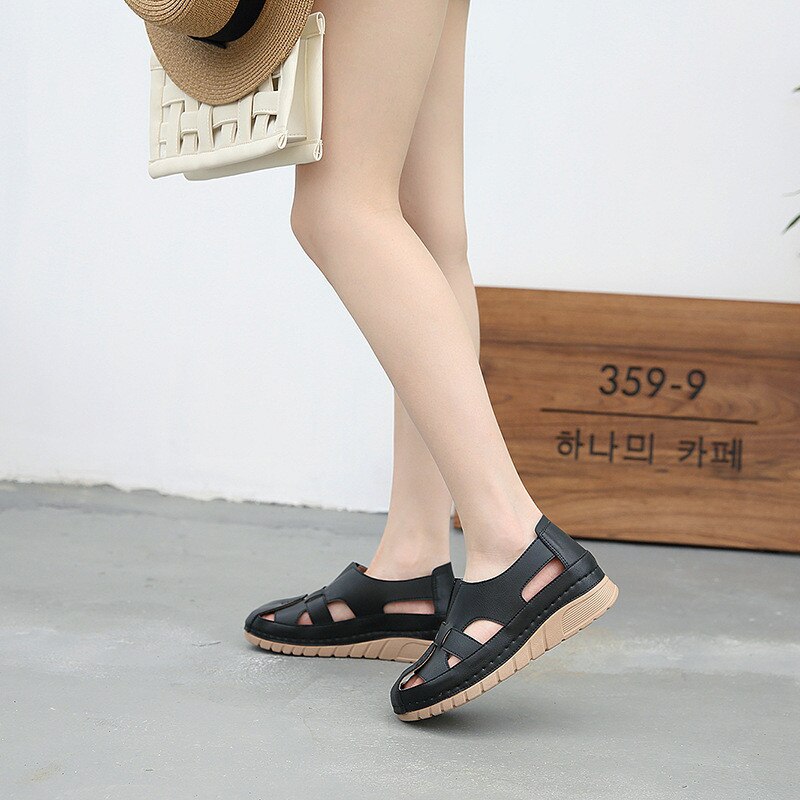 Die Sandalen sind innen bequem und weich, und das Design mit Luftlöchern hilft Ihnen, Ihre Füße kühl zu halten und Ihre Füße beim Gehen zu schützen. Die vordere Mulde der Sandalen macht die Füße bequemer und atmungsaktiver, und das Klettverschluss-Design an der Ferse sorgt dafür, dass die Sandalen besser an die Füße passen.