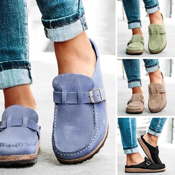Eine halboffene Mokassin-Sandale, deren Authentizität dank der sichtbaren Korkwölbung sofort erkennbar ist.