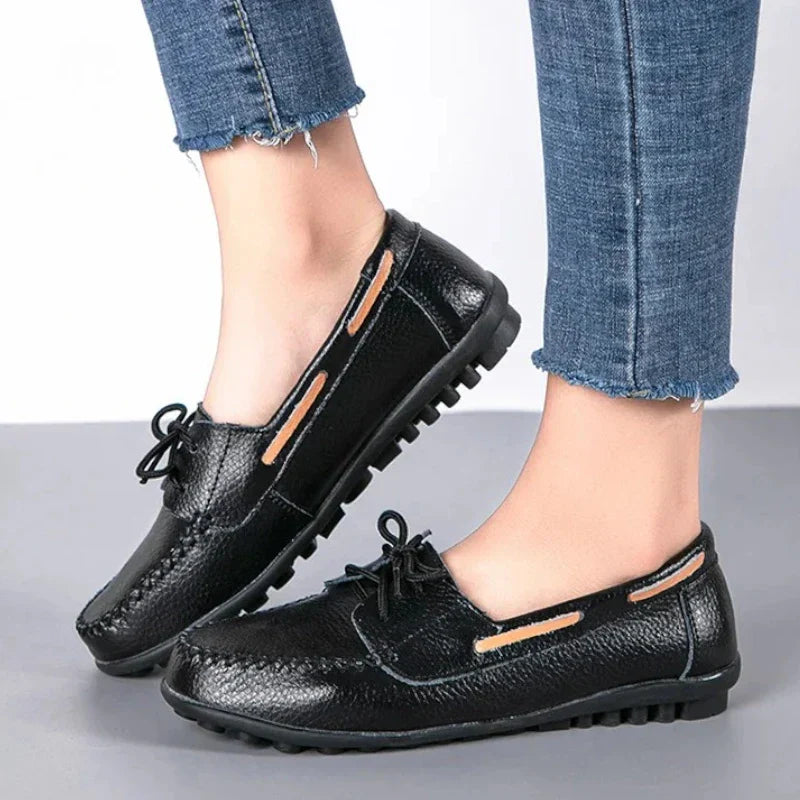 Orthopädische flache Ledermokassins für Damen mit Schnürsenkeln
