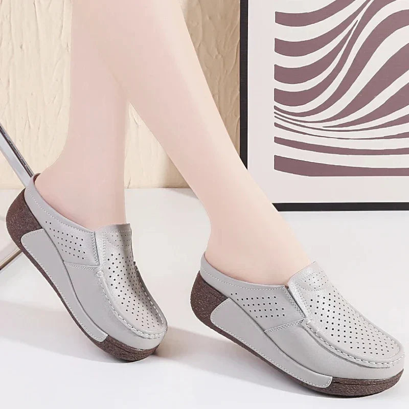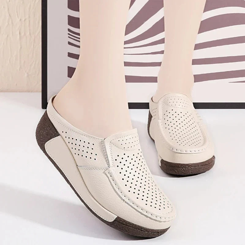 Orthopädische Mokassin-Pantoletten für Damen mit Keilabsatz