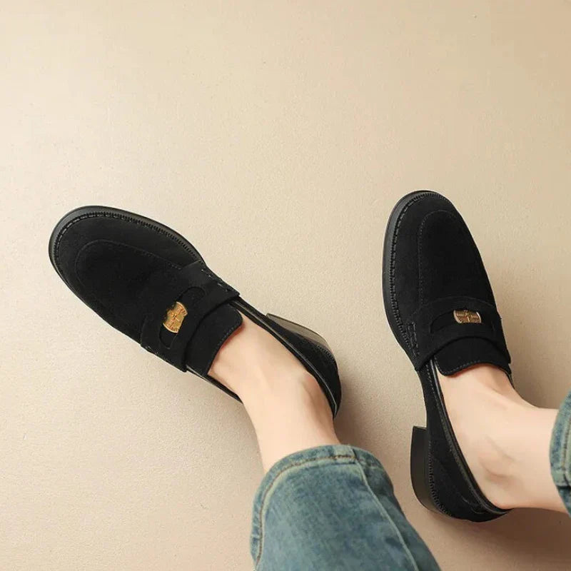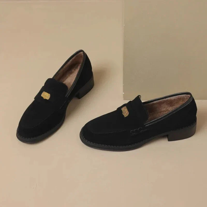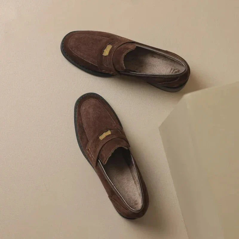 Gönnen Sie sich Luxus und Komfort mit unserem orthopädischen Damen- Mokassin aus gefüttertem Wildleder. Diese stilvollen Mokassins halten Sie warm und verleihen Ihrem Outfit gleichzeitig einen Hauch von Stil. Sie sind ideal für kühle Tage. Ihre klassische, abgerundete Zehenform wird durch ein markantes Zierstück betont und verleiht Ihrem Look ein elegantes Detail.