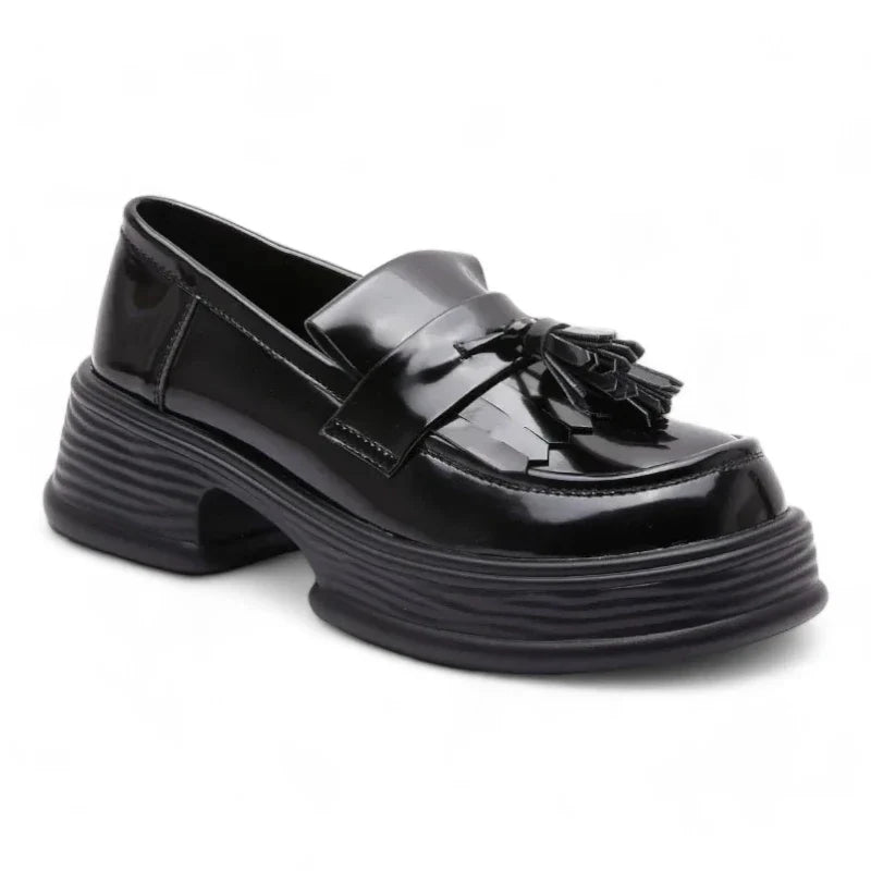 Entdecken Sie die orthopädischen Damen-Loafer aus Lackleder mit Fransen