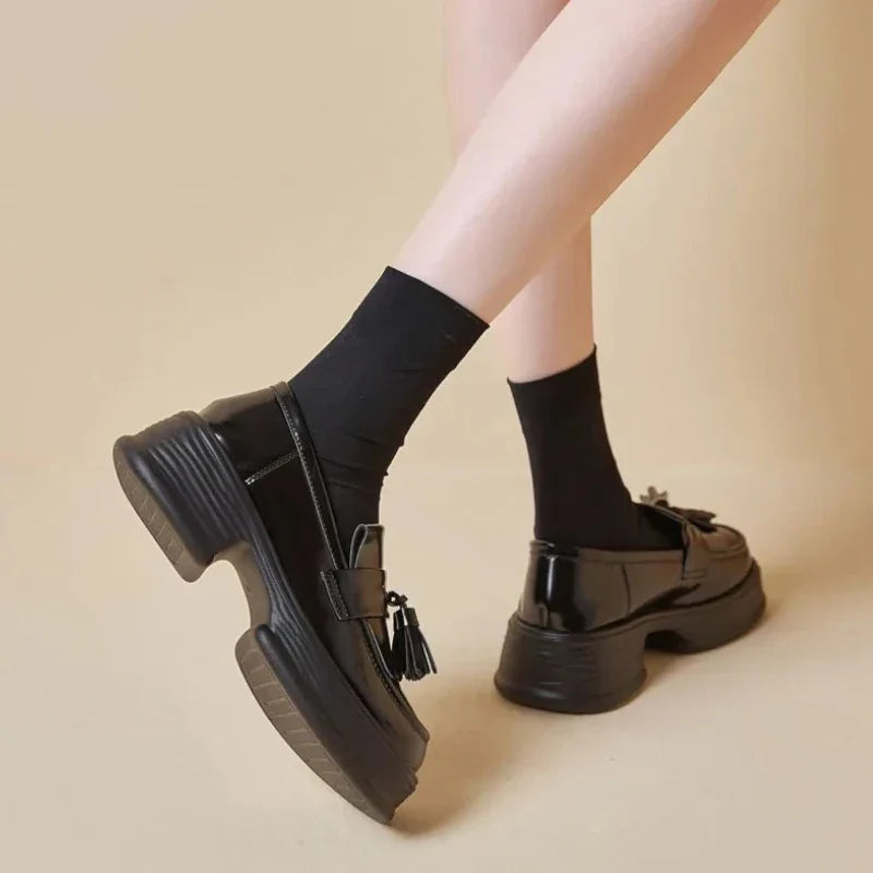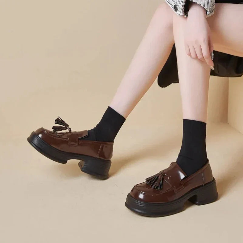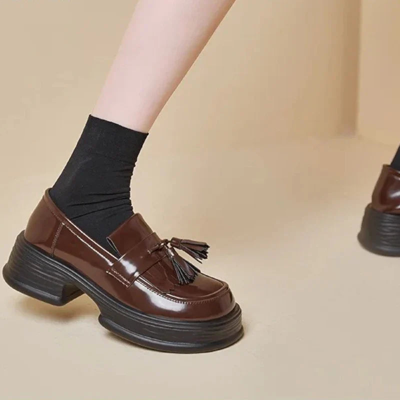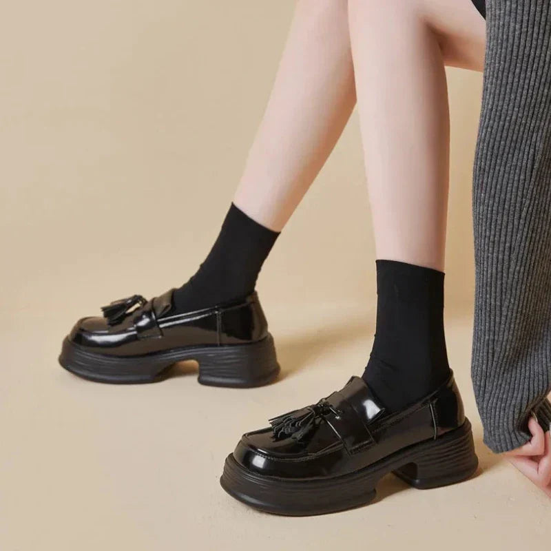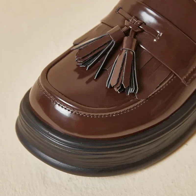 Diese orthopädischen Mokassins für Damen aus echtem Leder vereinen auf perfekte Weise trendigen Stil und luxuriösen Komfort. Ihr Lackleder und die Fransen verleihen einen raffinierten Touch, während die Keilabsätze für einen modernen und eleganten Look sorgen. Ob Sie sie täglich oder zu besonderen Anlässen tragen, diese Mokassins sind eine unverzichtbare Wahl für einen schicken und raffinierten Look.