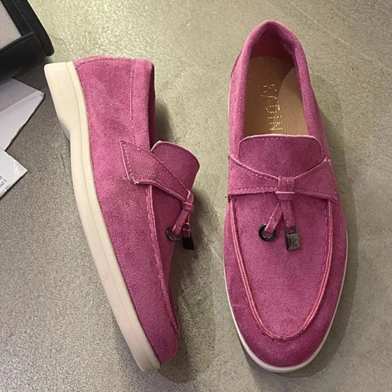 Orthopädischer Damenmokassin mit abgerundeter Spitze aus Wildlederimitat