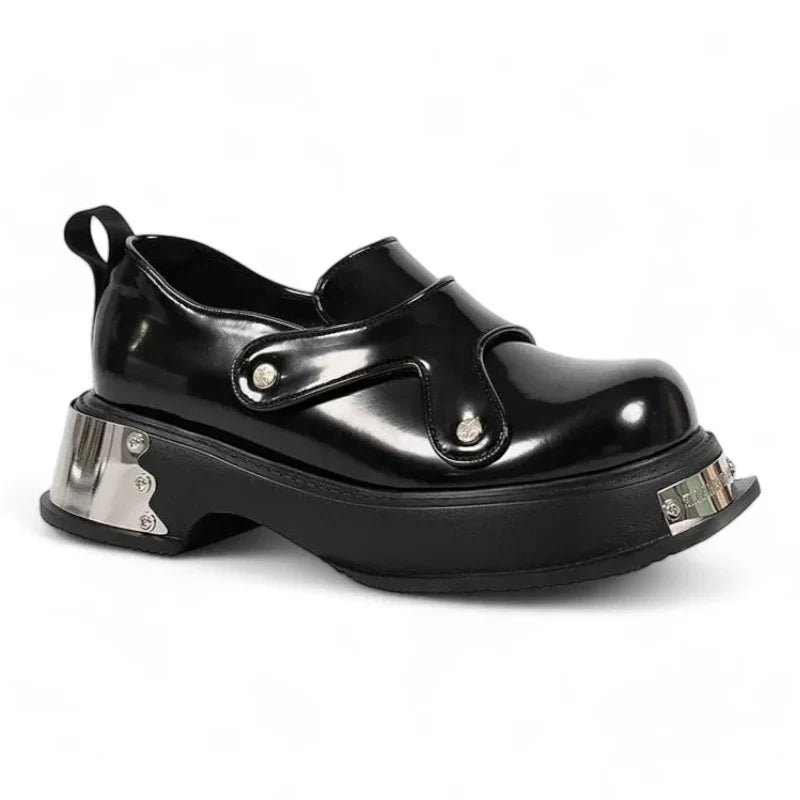 Orthopädischer Lackmokassin für Damen mit Keilabsätzen im Punk-Stil