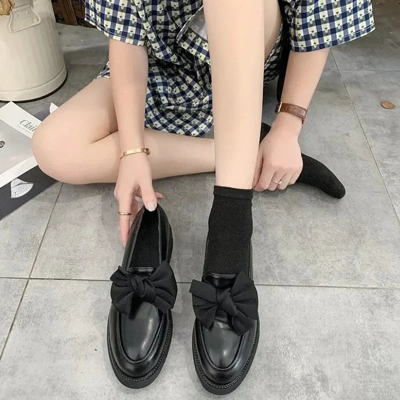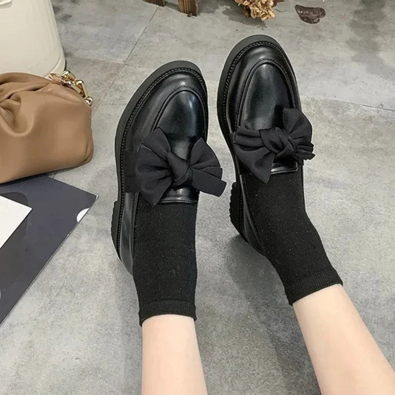 Gönnen Sie sich zeitlosen Stil mit unserem orthopädischen Damen-Mokassin mit abgerundeten Zehen, der Eleganz und Komfort vereint. Jedes Paar ist mit einer eleganten Stoffschleife verziert und verleiht Ihrem Look eine feminine Note. Diese schwarzen Slipper sind für alle Gelegenheiten geeignet, egal ob für die Arbeit oder für entspannte Abende. Dank der dezenten Absätze profitieren Sie von einem eleganten und sicheren Gang und bleiben dabei den ganzen Tag bequem.