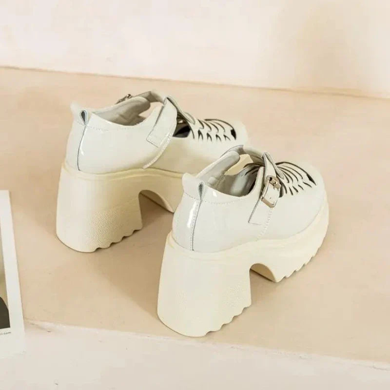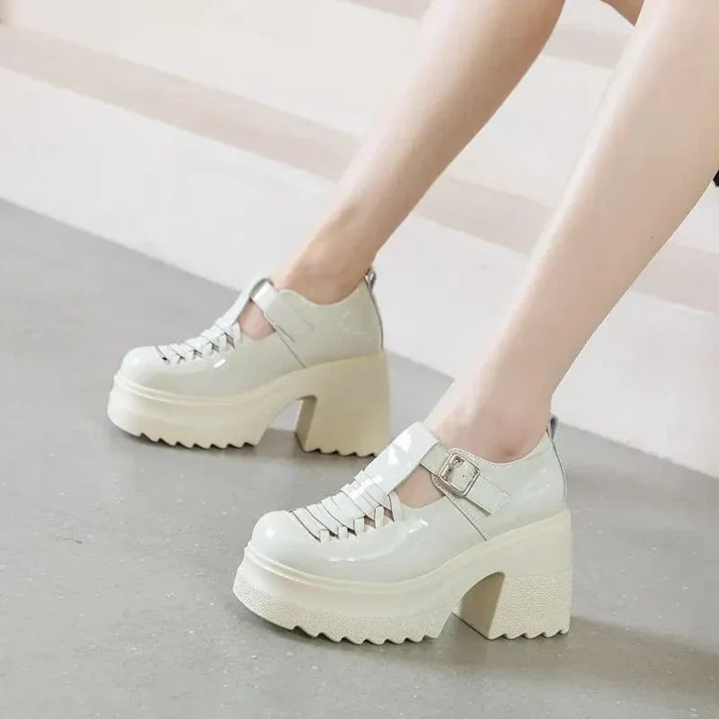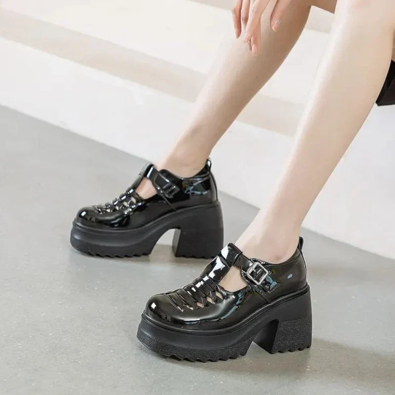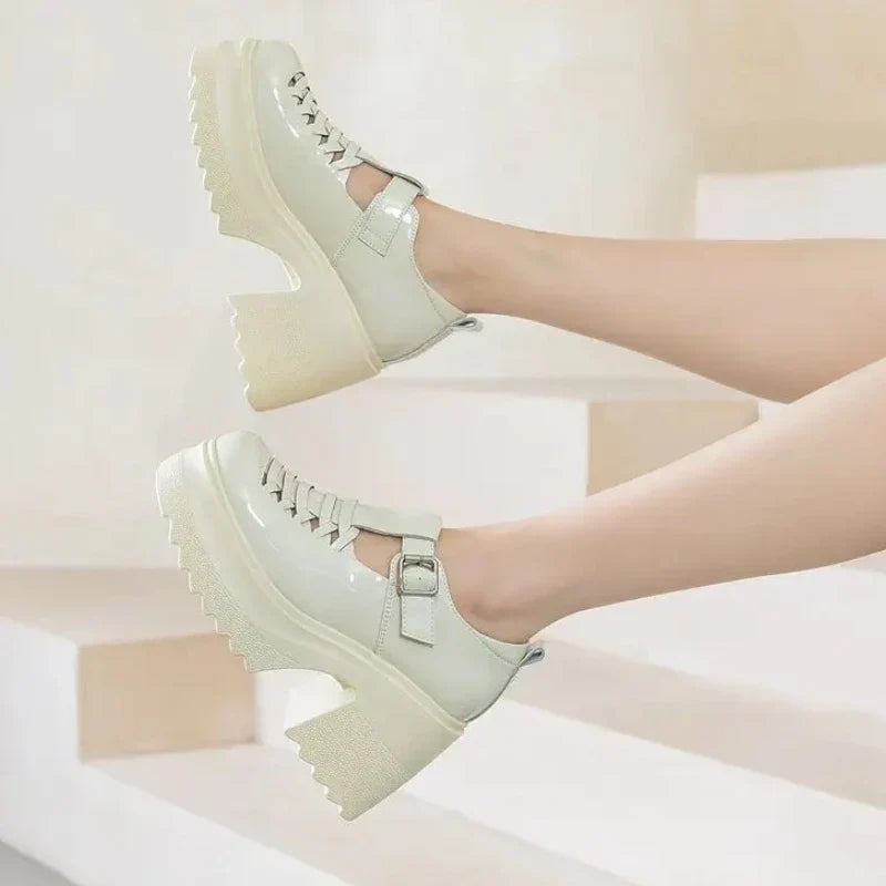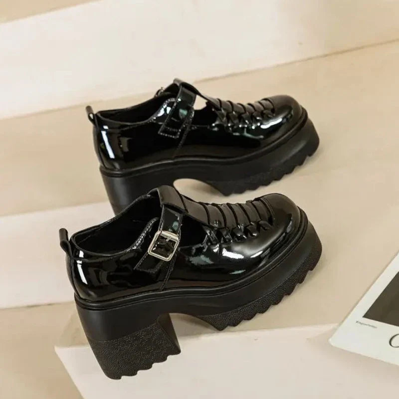 Elegante Lackleder-Mokassins für Damen mit bequemen hohen Absätzen