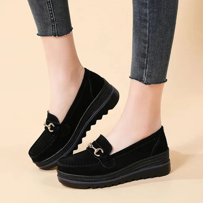 Elegante Wildleder-Mokassins für Damen mit orthopädischem Komfort und modischen Keilabsätzen