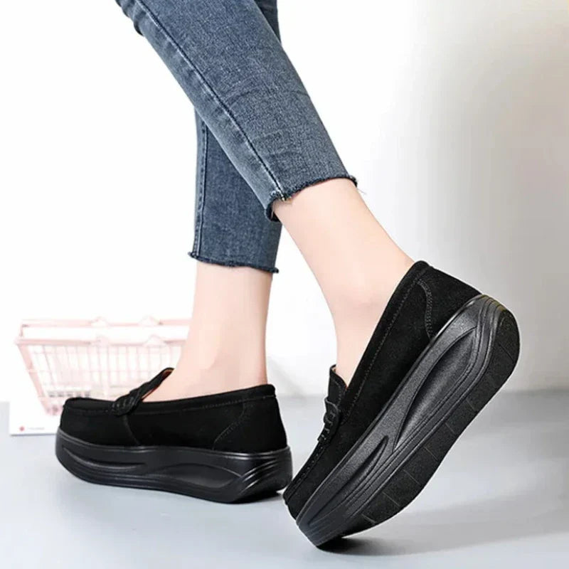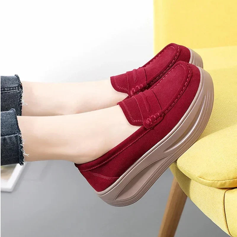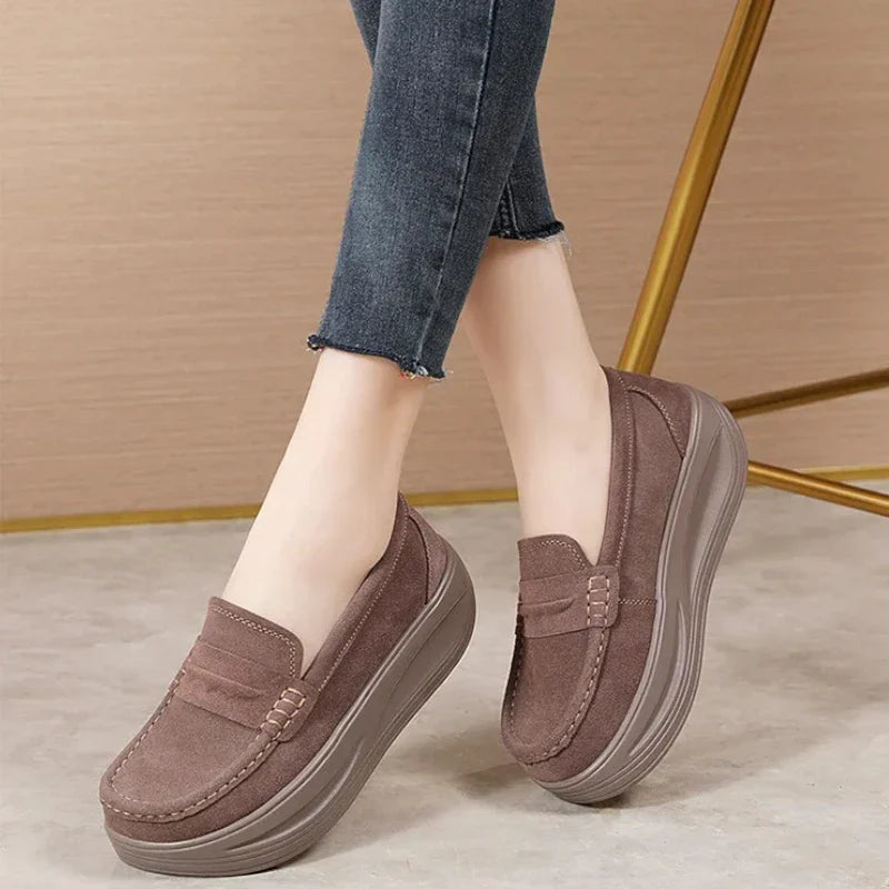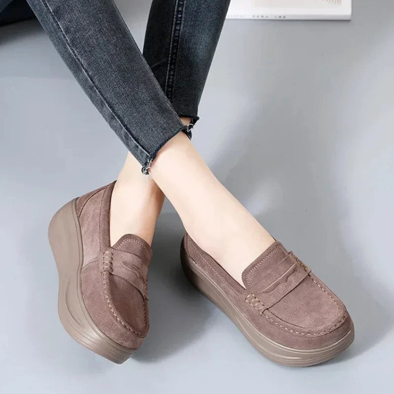 Orthopädischer Keilmokassin für Damen aus Wildlederimitat