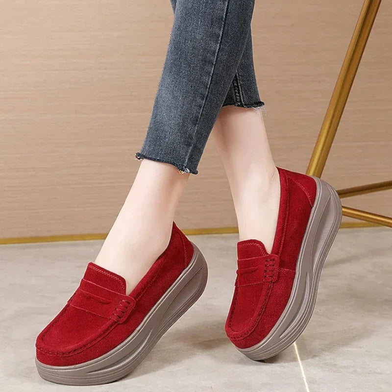 Orthopädischer Mokassin für Damen mit Keilabsätzen aus Wildlederimitat