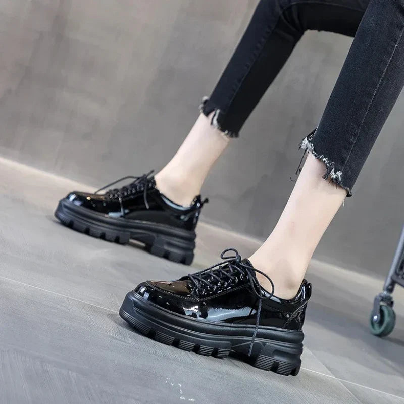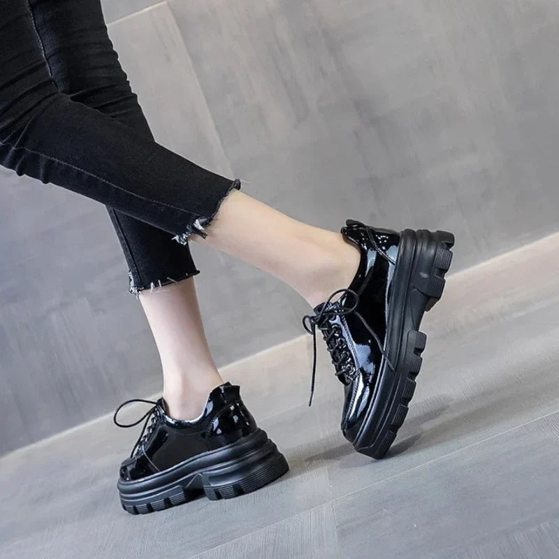 Orthopädische Damen-Loafer aus Lackleder mit Keilabsatz und Schnürung