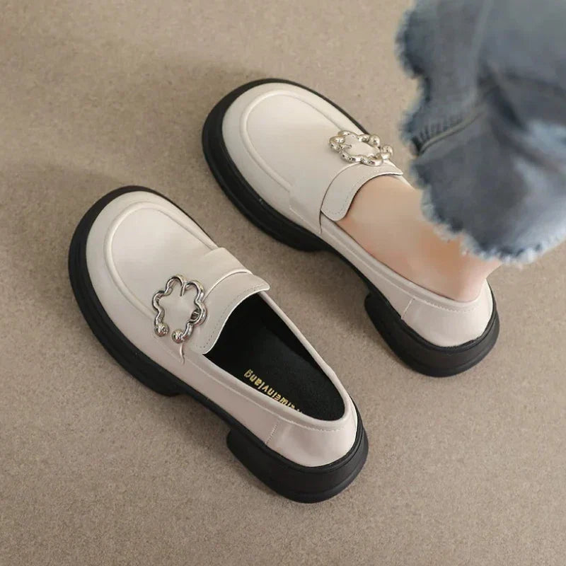 Orthopädischer Mokassin für Damen, verziert mit einer floralen Schnalle