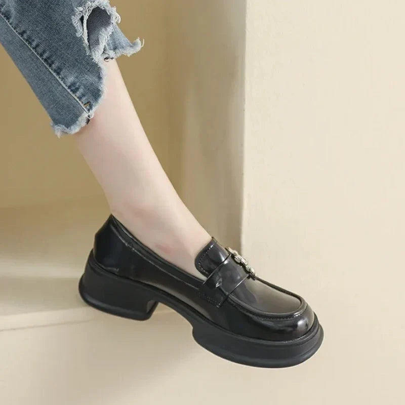Entdecken Sie unsere orthopädischen Mokassins für Damen , die mit einer eleganten Blumenschnalle verziert sind und Stil und Komfort vereinen. Diese aus hochwertigem Kunstleder gefertigten Keil-Loafer bieten Ihren Füßen den ganzen Tag über optimalen Halt.
