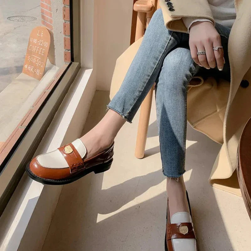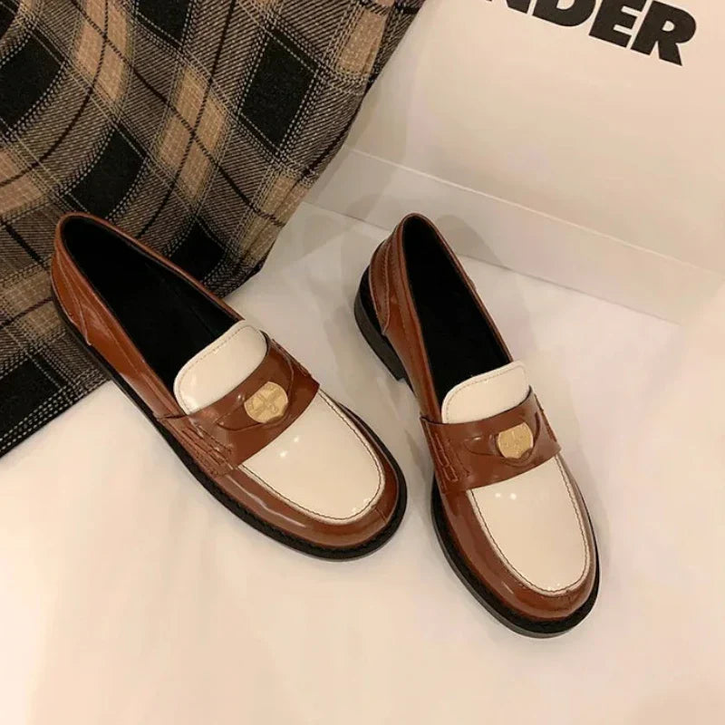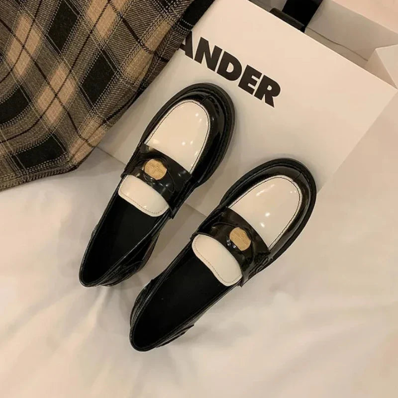 Eleganter zweifarbiger Damenmokassin aus hochwertigem Lackleder mit orthopädischer Unterstützung