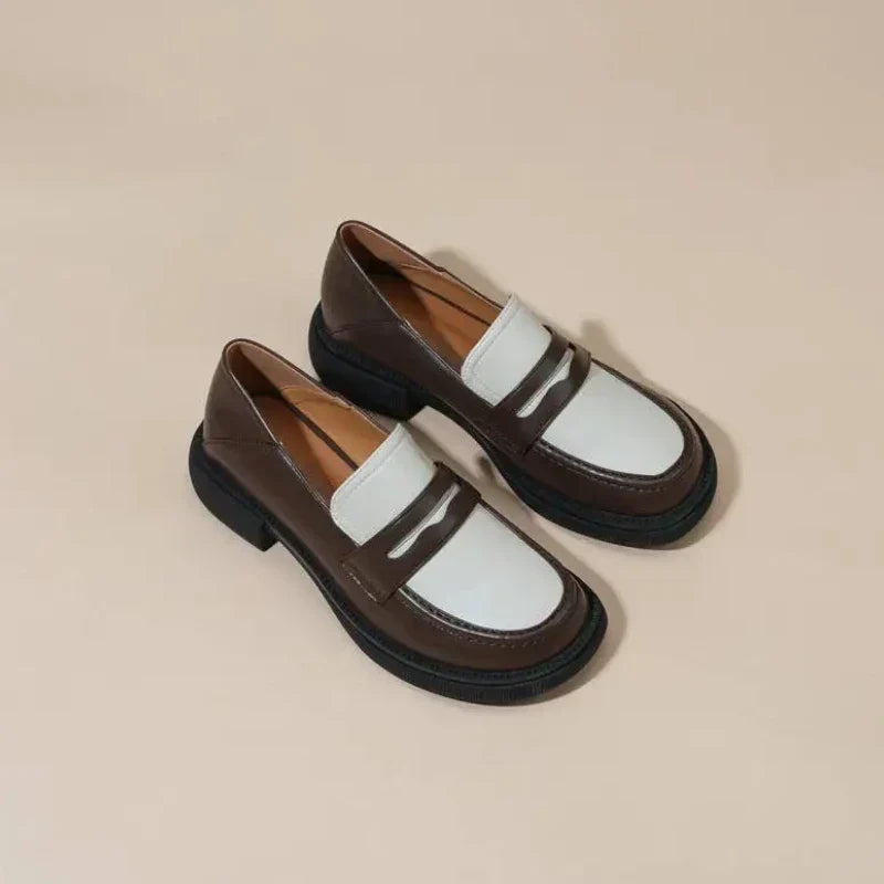 Eleganter zweifarbiger Damenmokassin mit orthopädischem Komfort und stylishen Absatz